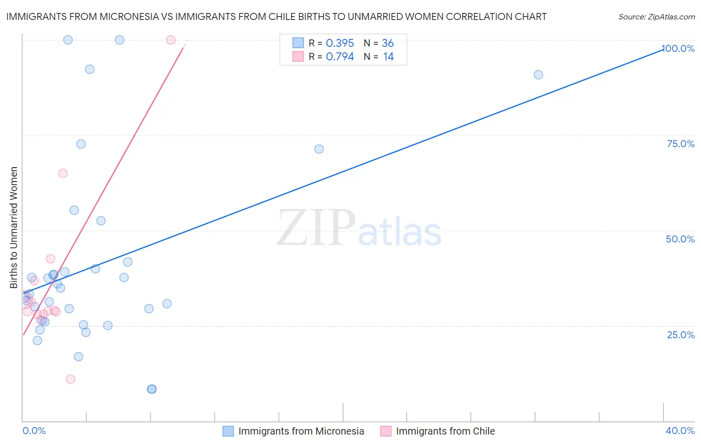 Immigrants from Micronesia vs Immigrants from Chile Births to Unmarried Women Correlation Chart