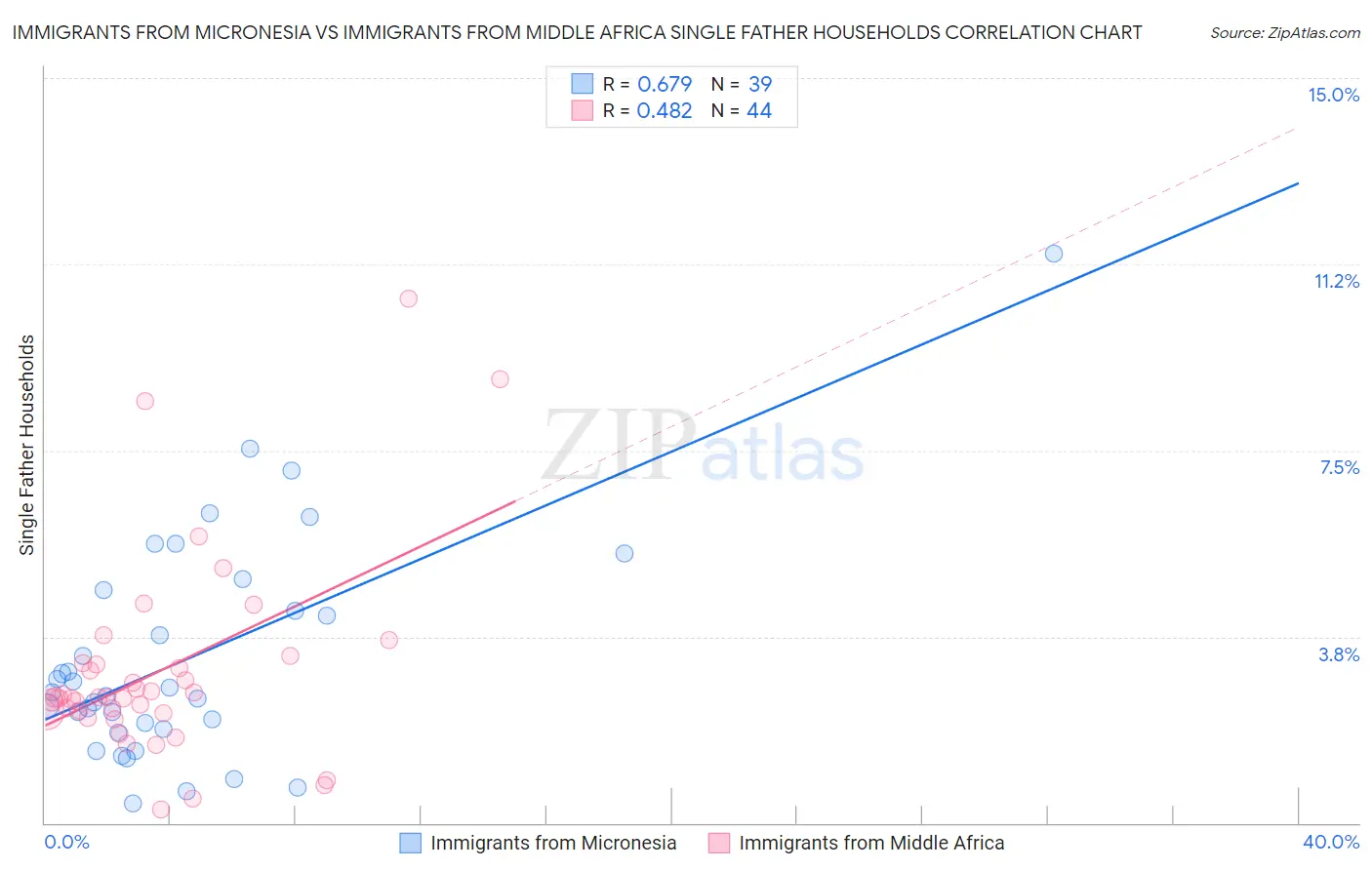 Immigrants from Micronesia vs Immigrants from Middle Africa Single Father Households Correlation Chart