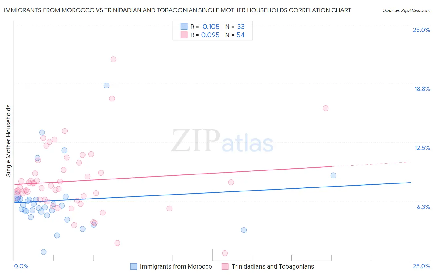 Immigrants from Morocco vs Trinidadian and Tobagonian Single Mother Households Correlation Chart