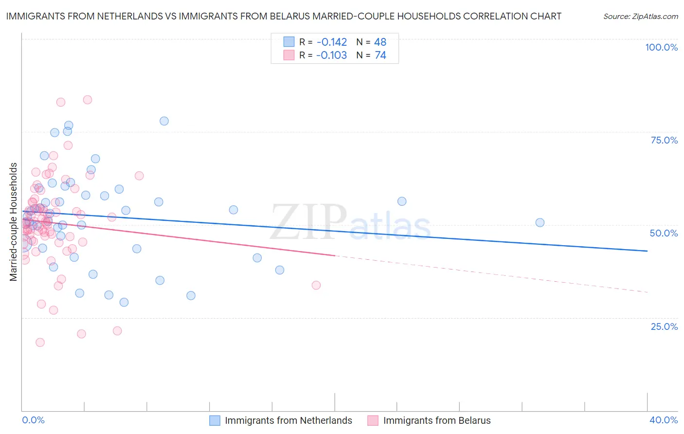 Immigrants from Netherlands vs Immigrants from Belarus Married-couple Households Correlation Chart