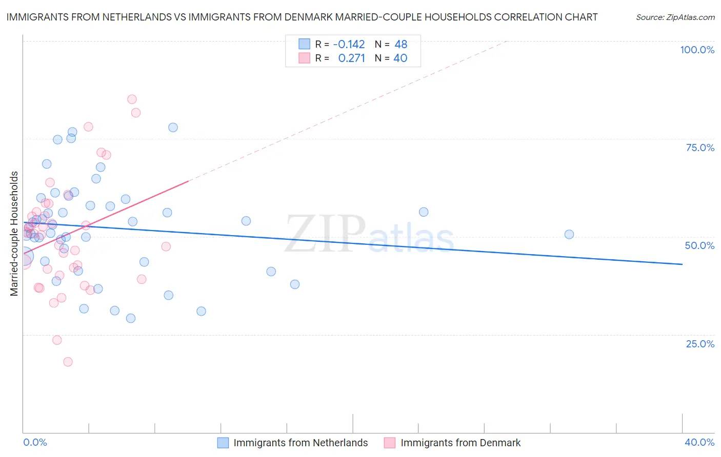Immigrants from Netherlands vs Immigrants from Denmark Married-couple Households Correlation Chart