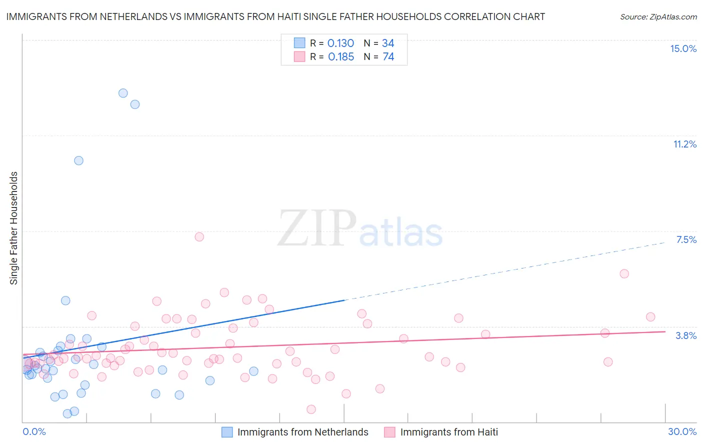 Immigrants from Netherlands vs Immigrants from Haiti Single Father Households Correlation Chart