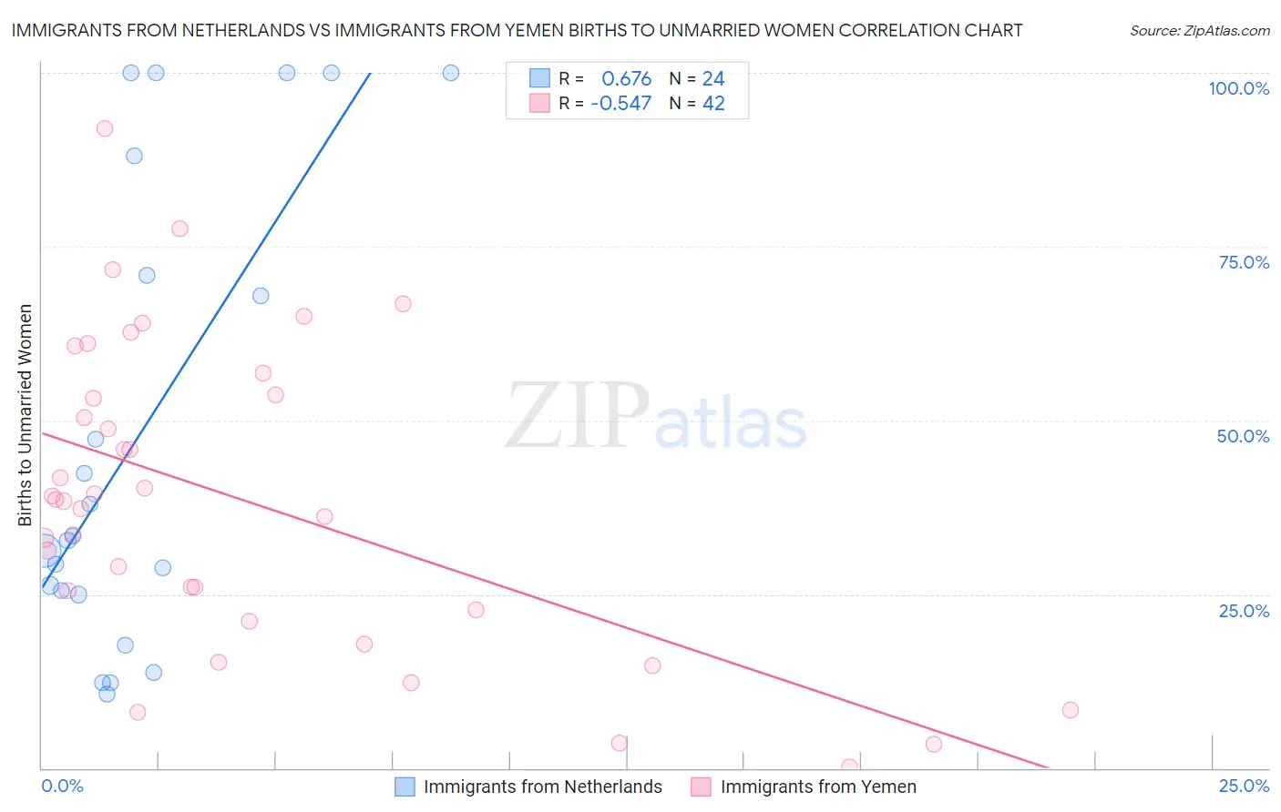 Immigrants from Netherlands vs Immigrants from Yemen Births to Unmarried Women Correlation Chart