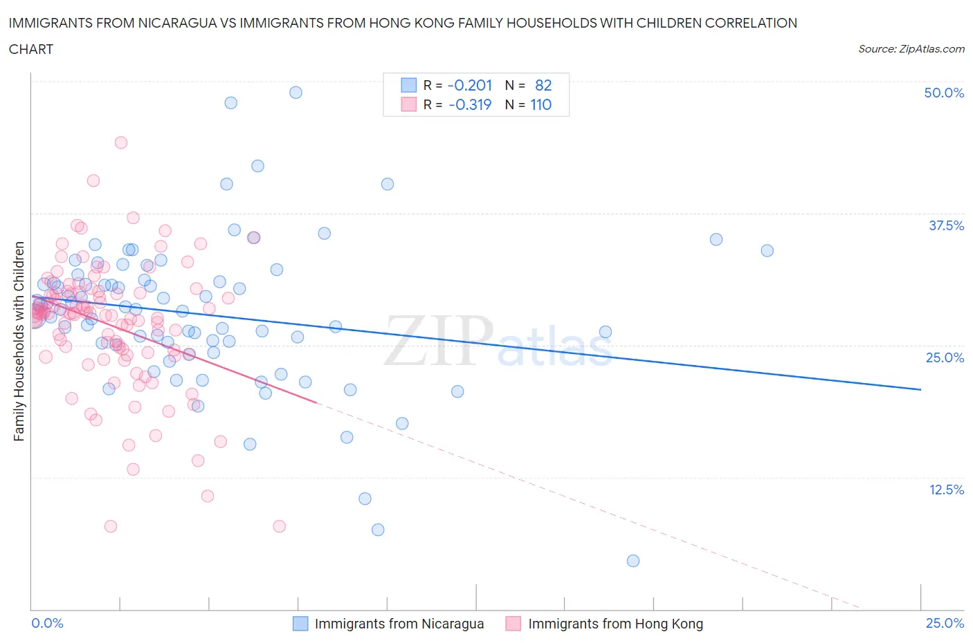 Immigrants from Nicaragua vs Immigrants from Hong Kong Family Households with Children Correlation Chart