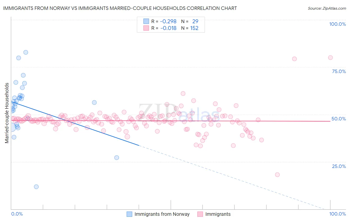 Immigrants from Norway vs Immigrants Married-couple Households Correlation Chart