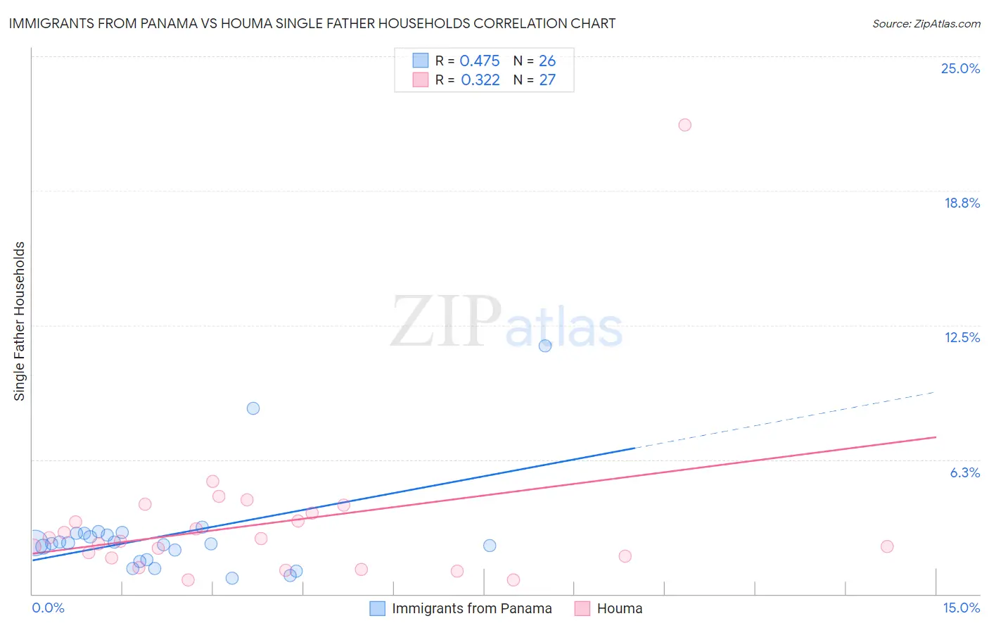 Immigrants from Panama vs Houma Single Father Households Correlation Chart