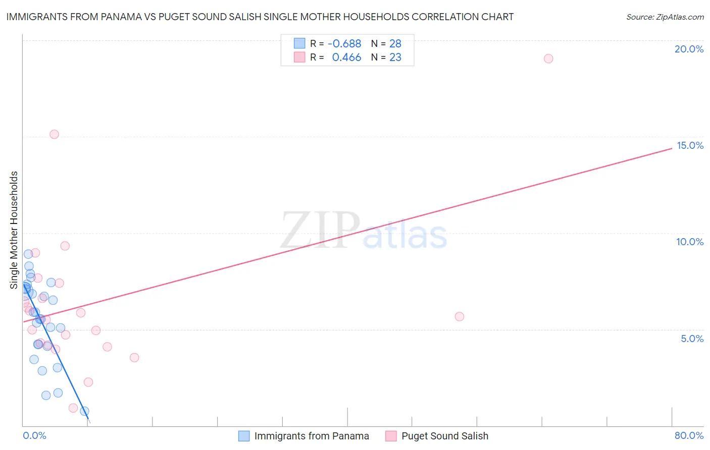 Immigrants from Panama vs Puget Sound Salish Single Mother Households Correlation Chart