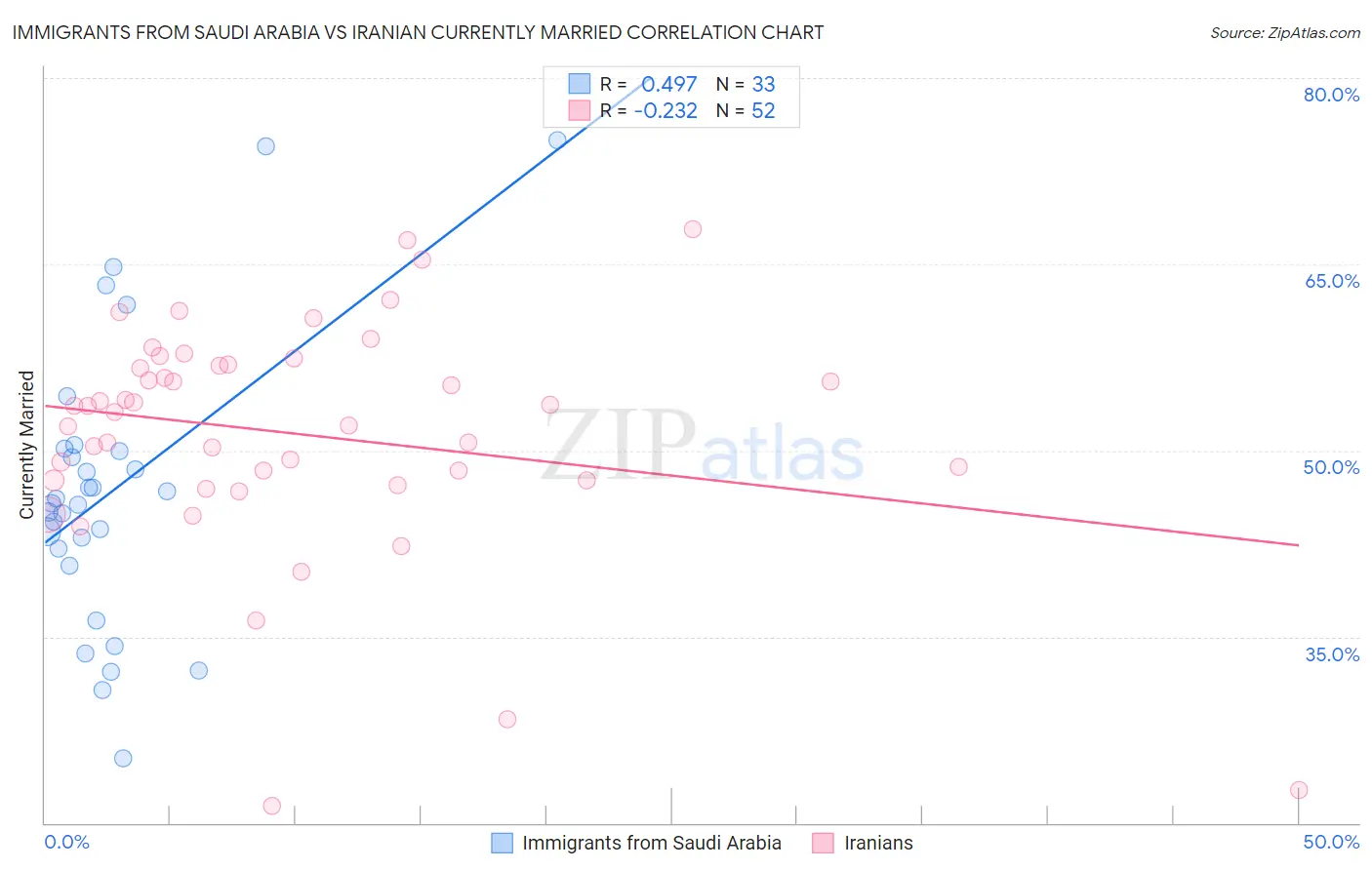 Immigrants from Saudi Arabia vs Iranian Currently Married Correlation Chart