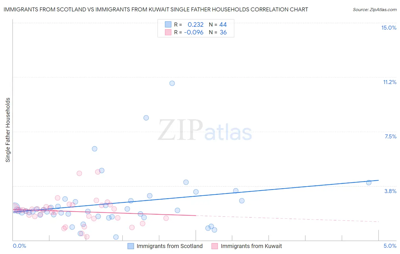 Immigrants from Scotland vs Immigrants from Kuwait Single Father Households Correlation Chart