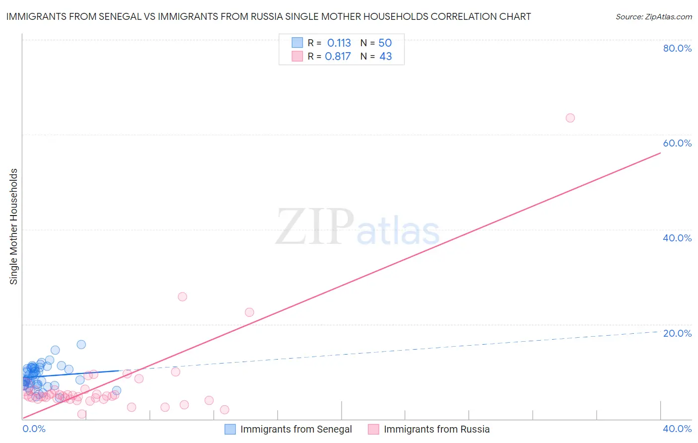 Immigrants from Senegal vs Immigrants from Russia Single Mother Households Correlation Chart