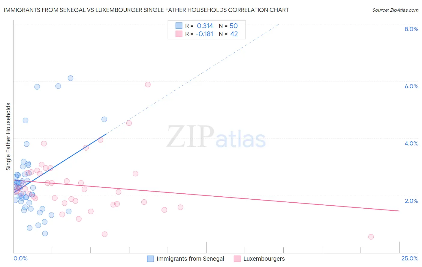 Immigrants from Senegal vs Luxembourger Single Father Households Correlation Chart