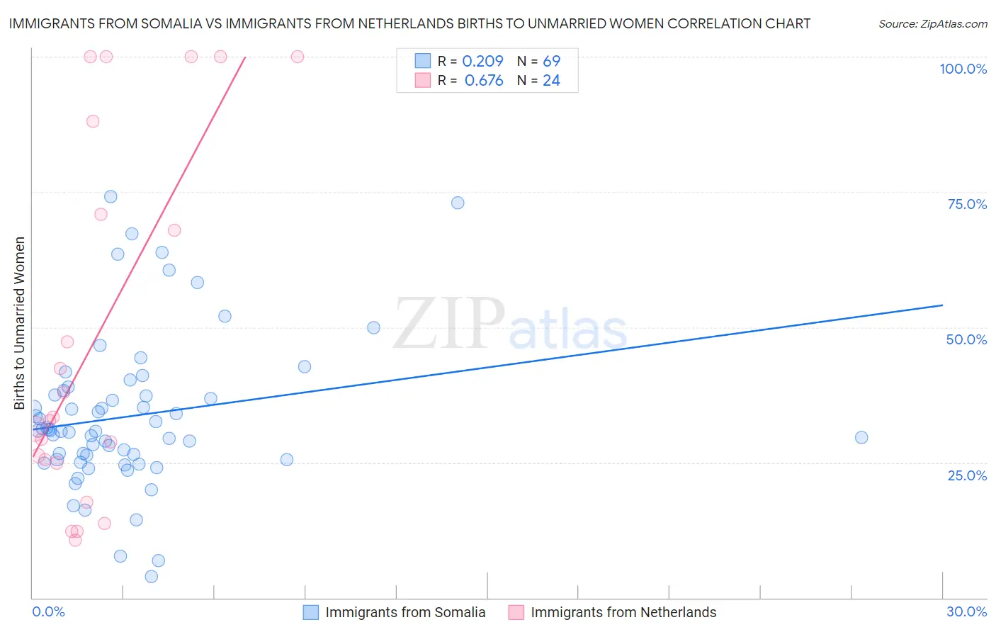 Immigrants from Somalia vs Immigrants from Netherlands Births to Unmarried Women Correlation Chart