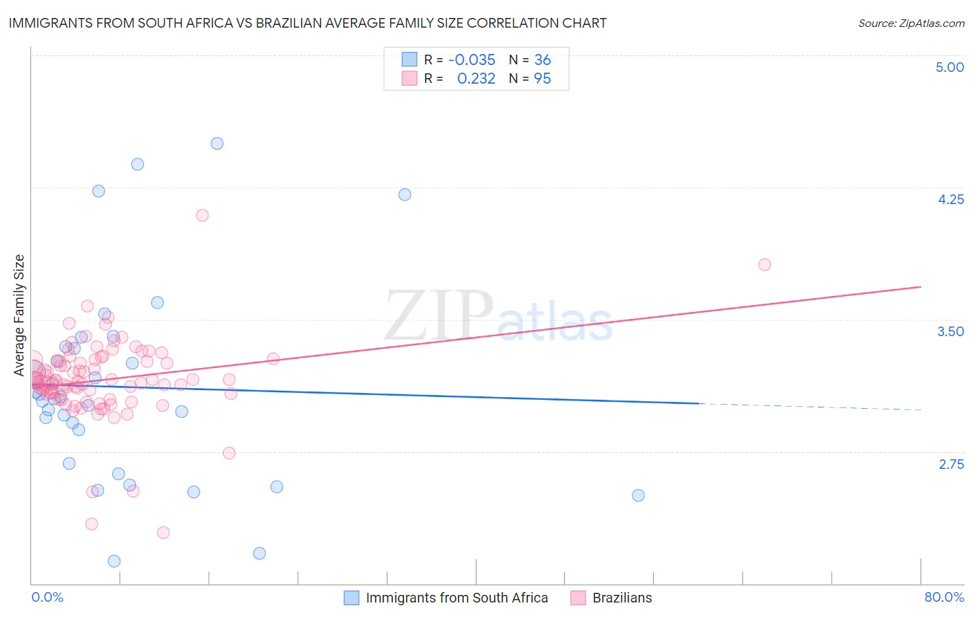 Immigrants from South Africa vs Brazilian Average Family Size Correlation Chart