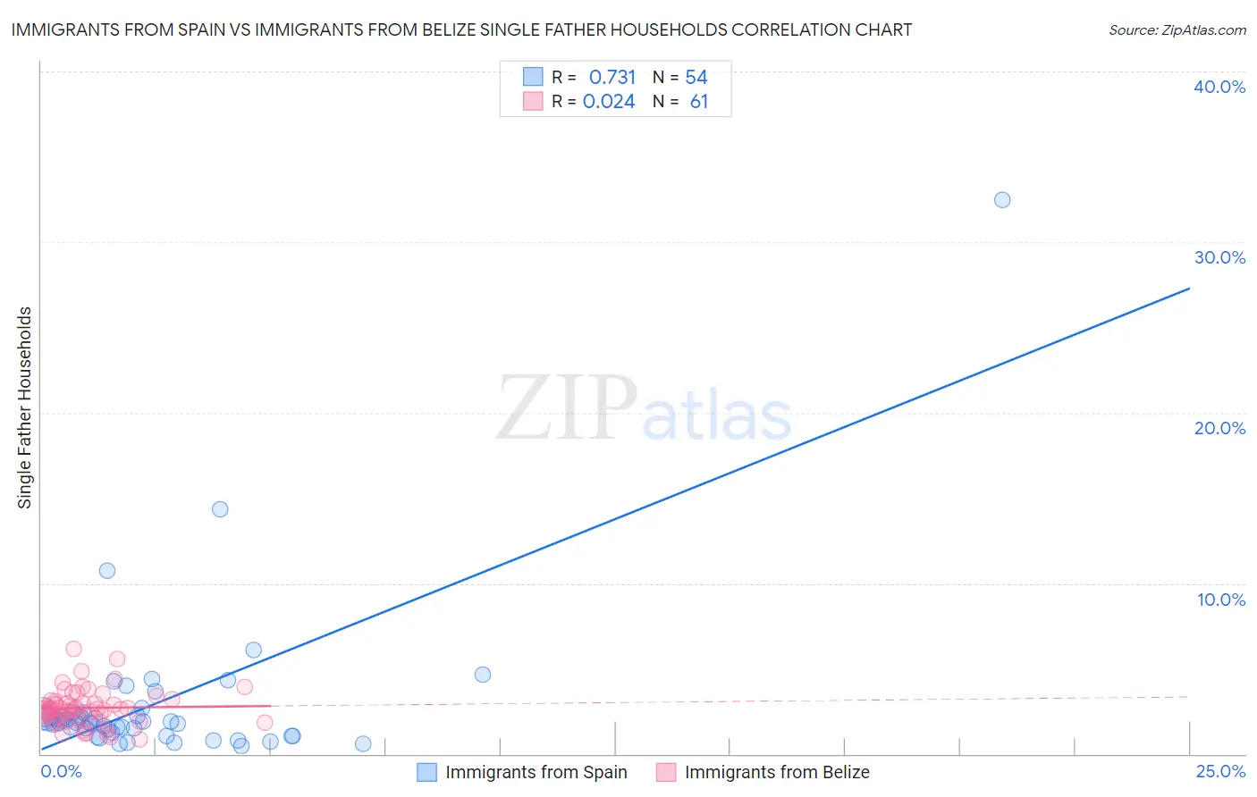 Immigrants from Spain vs Immigrants from Belize Single Father Households Correlation Chart