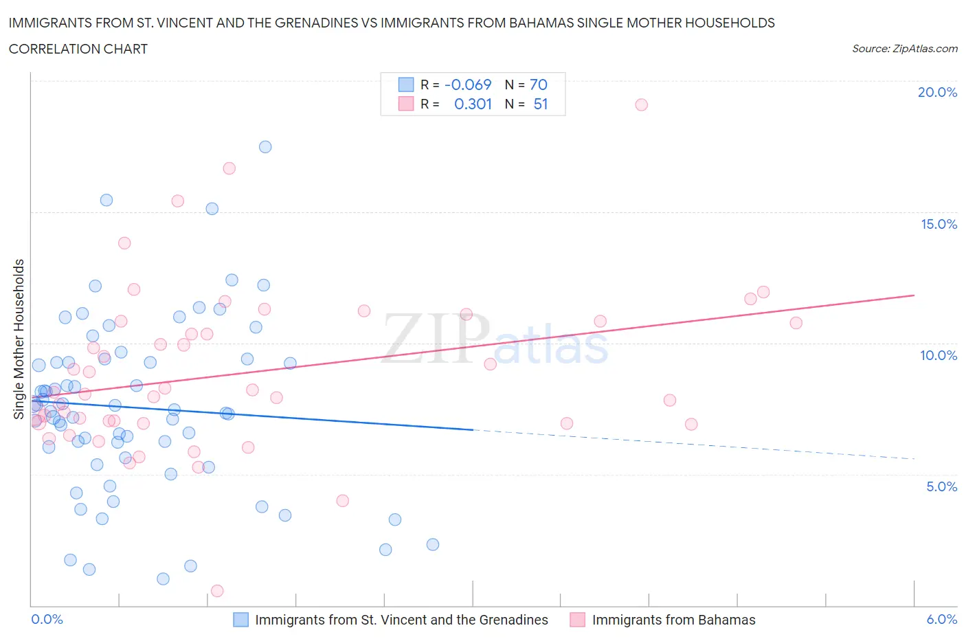 Immigrants from St. Vincent and the Grenadines vs Immigrants from Bahamas Single Mother Households Correlation Chart
