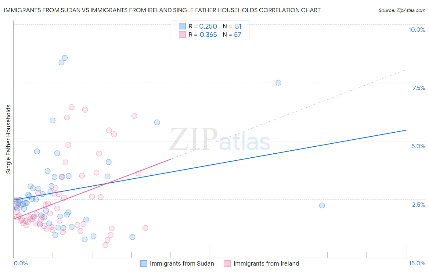 Immigrants from Sudan vs Immigrants from Ireland Single Father Households Correlation Chart