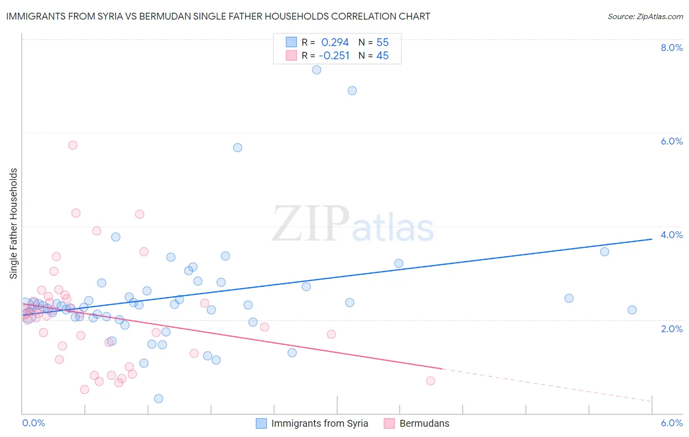 Immigrants from Syria vs Bermudan Single Father Households Correlation Chart
