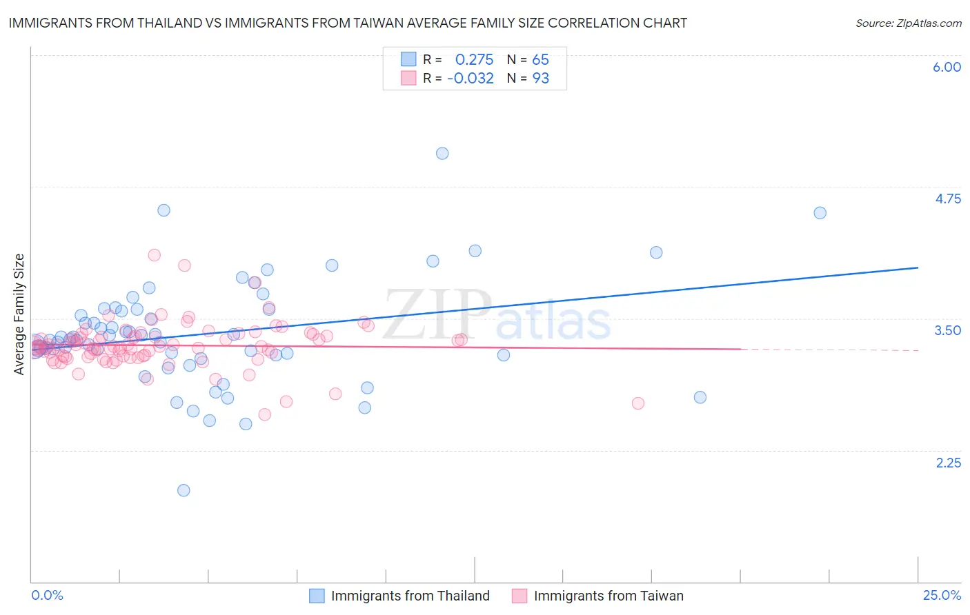 Immigrants from Thailand vs Immigrants from Taiwan Average Family Size Correlation Chart