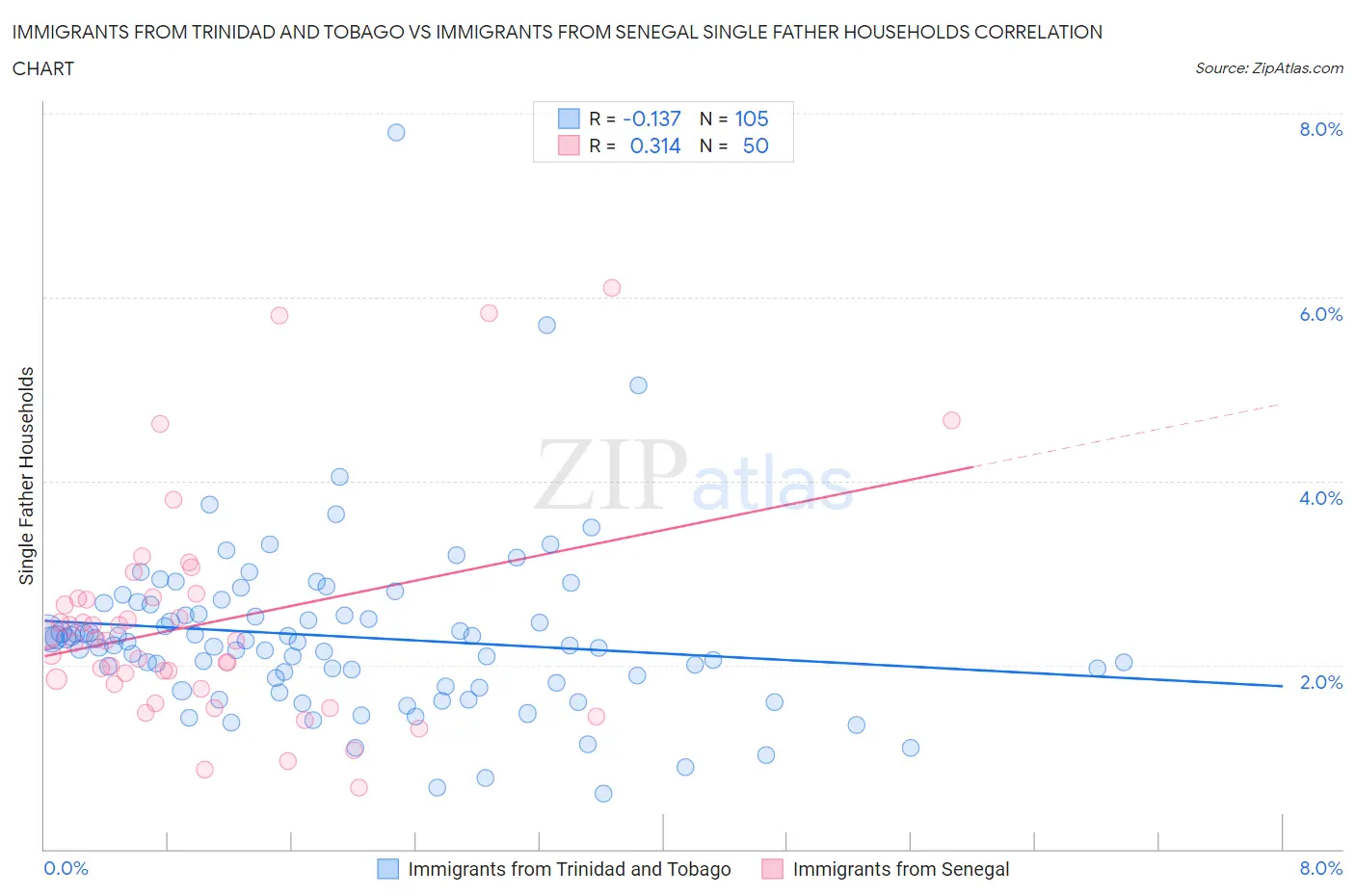 Immigrants from Trinidad and Tobago vs Immigrants from Senegal Single Father Households Correlation Chart