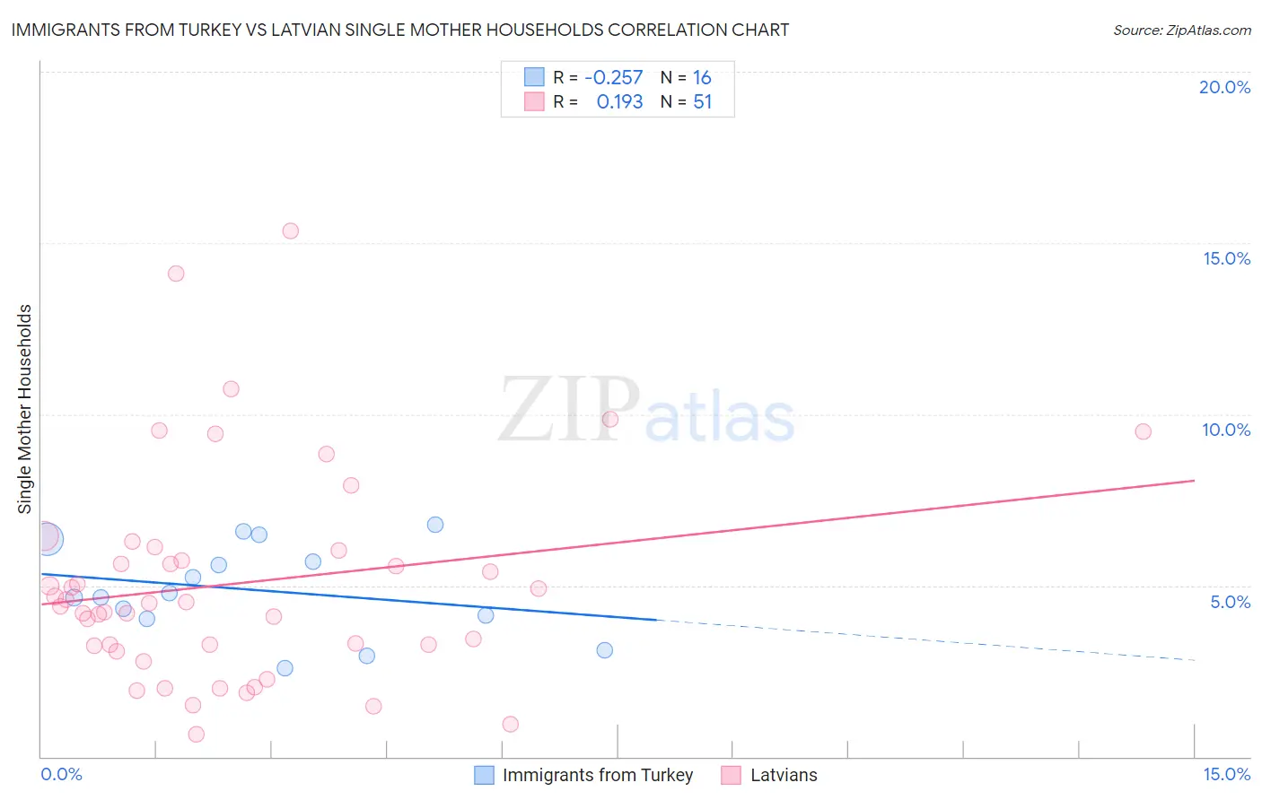 Immigrants from Turkey vs Latvian Single Mother Households Correlation Chart