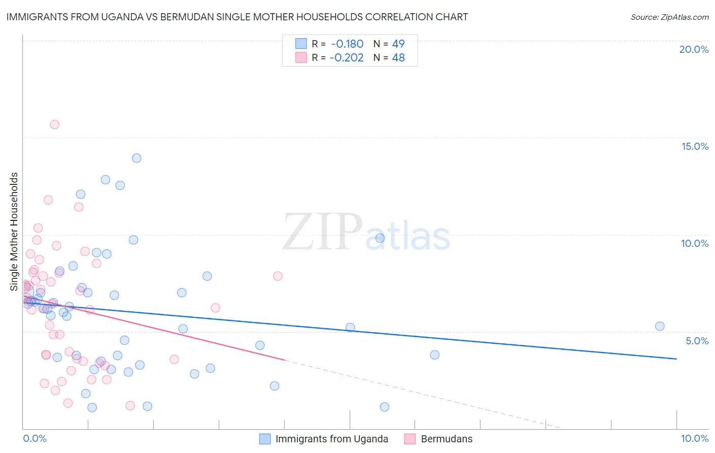 Immigrants from Uganda vs Bermudan Single Mother Households Correlation Chart