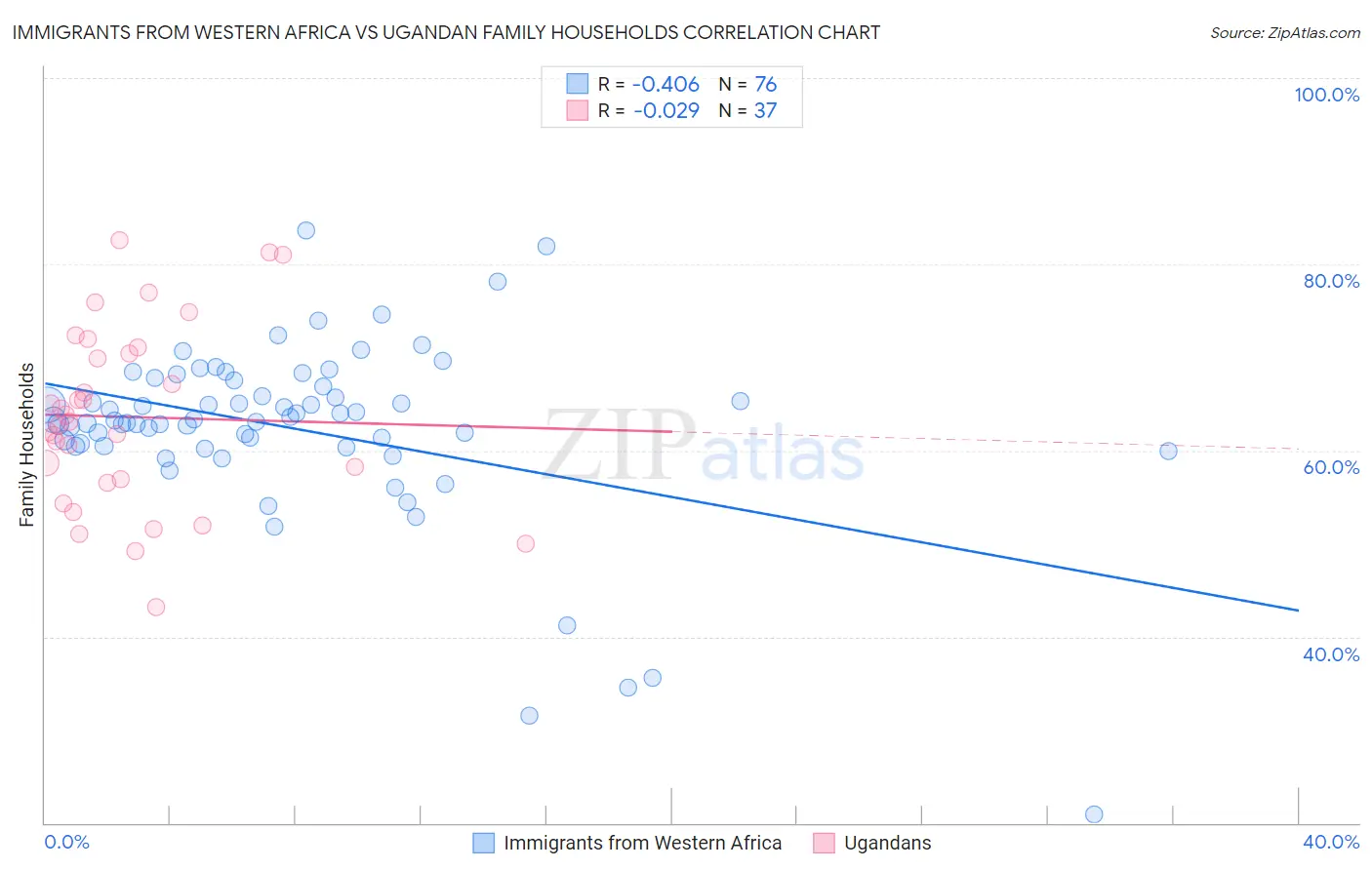 Immigrants from Western Africa vs Ugandan Family Households Correlation Chart