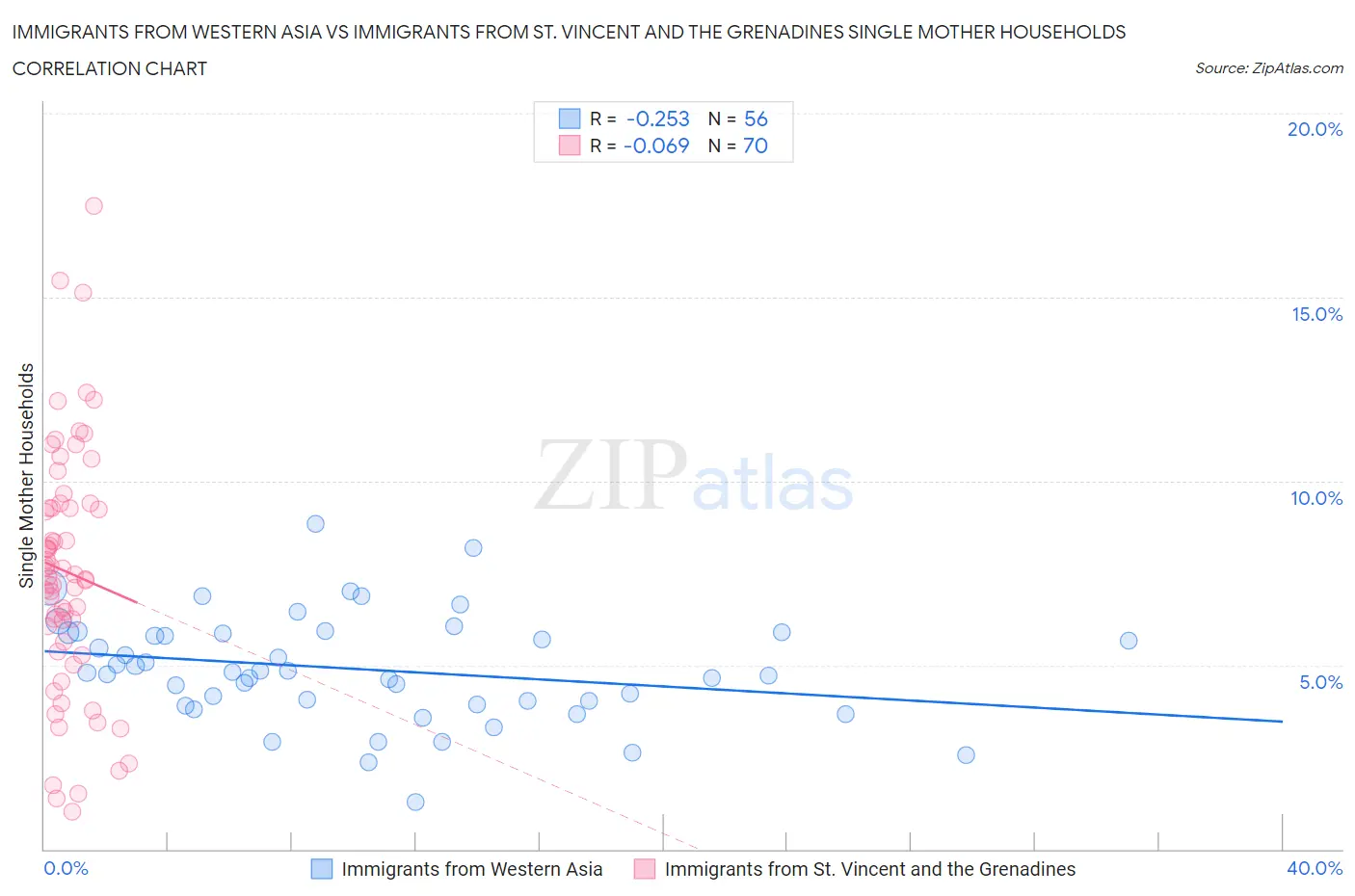 Immigrants from Western Asia vs Immigrants from St. Vincent and the Grenadines Single Mother Households Correlation Chart