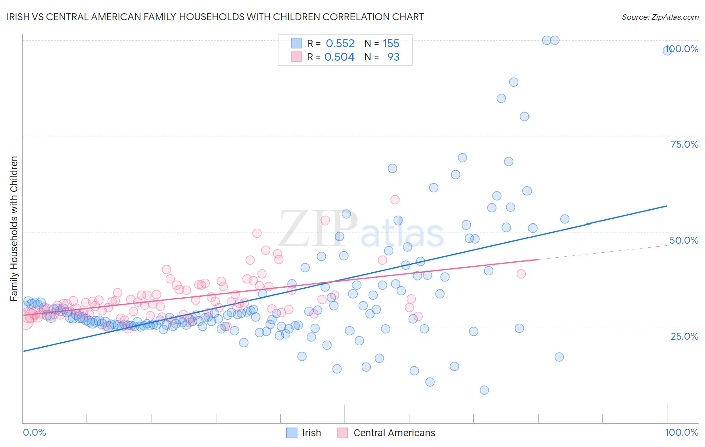 Irish vs Central American Family Households with Children Correlation Chart