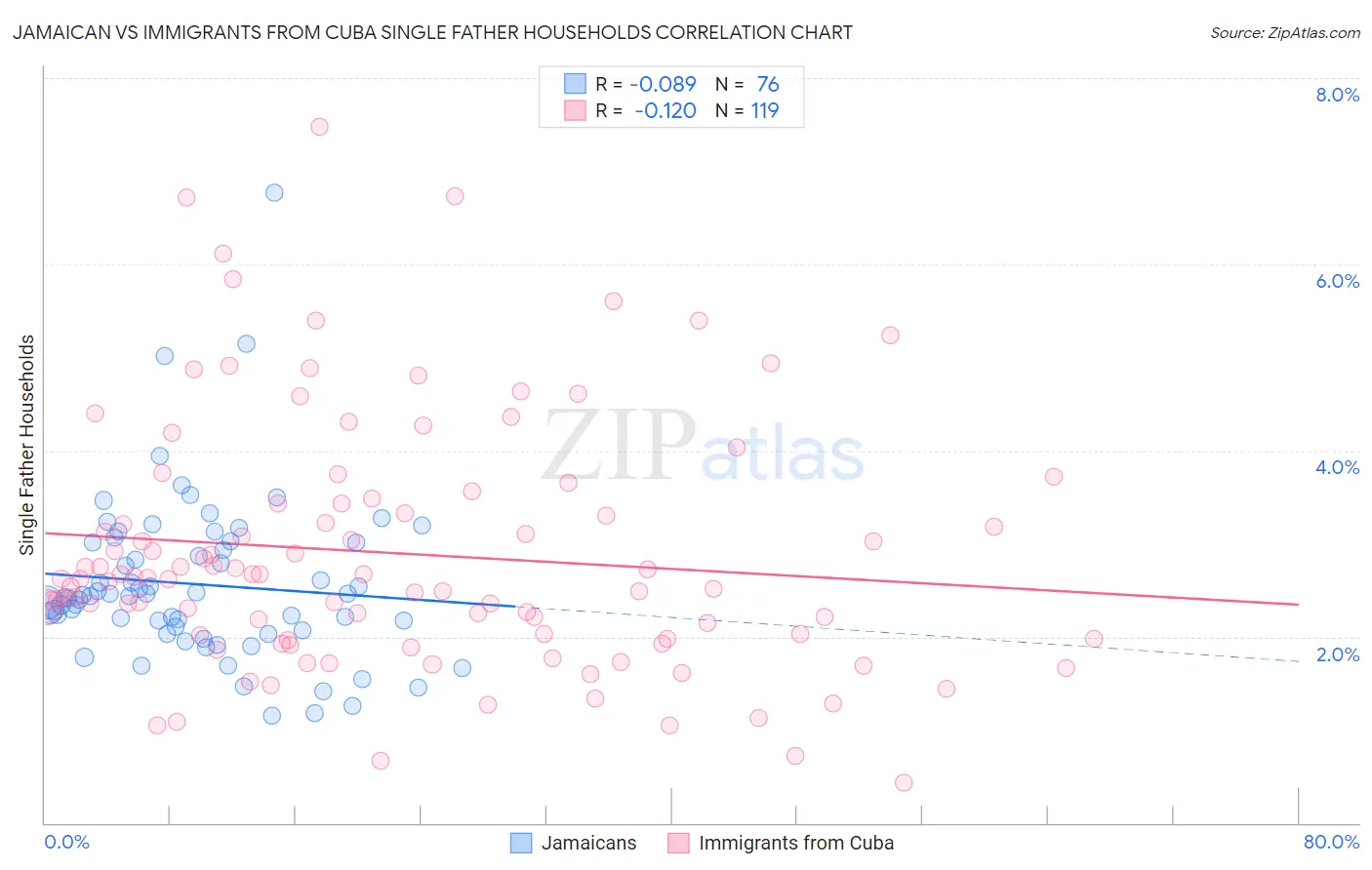 Jamaican vs Immigrants from Cuba Single Father Households Correlation Chart
