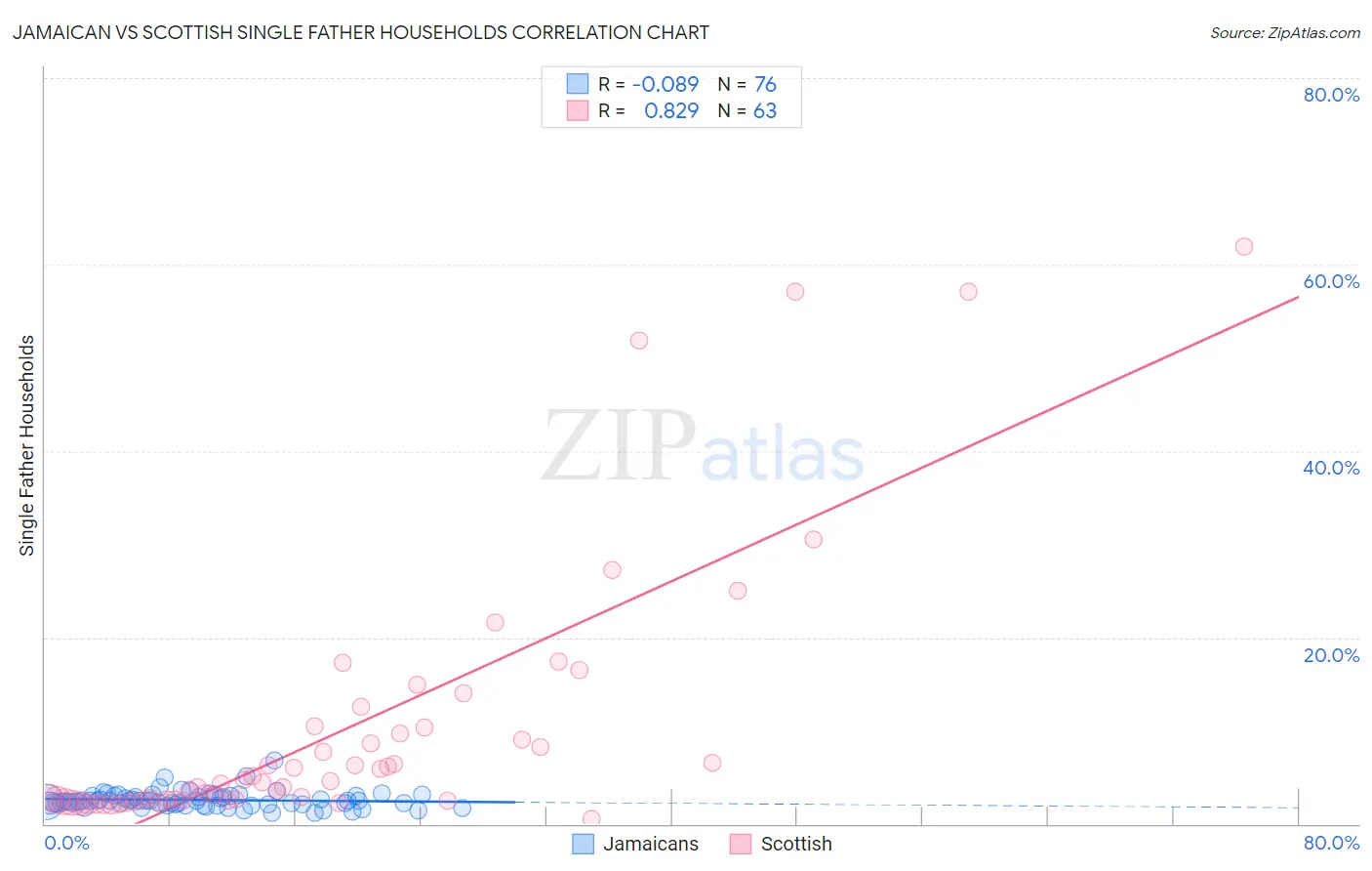 Jamaican vs Scottish Single Father Households Correlation Chart