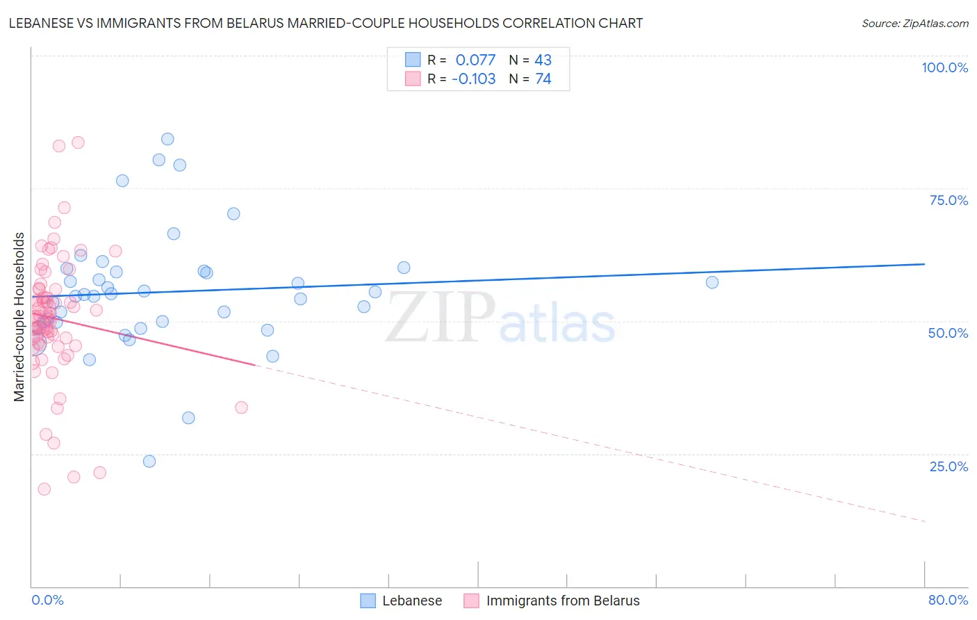 Lebanese vs Immigrants from Belarus Married-couple Households Correlation Chart