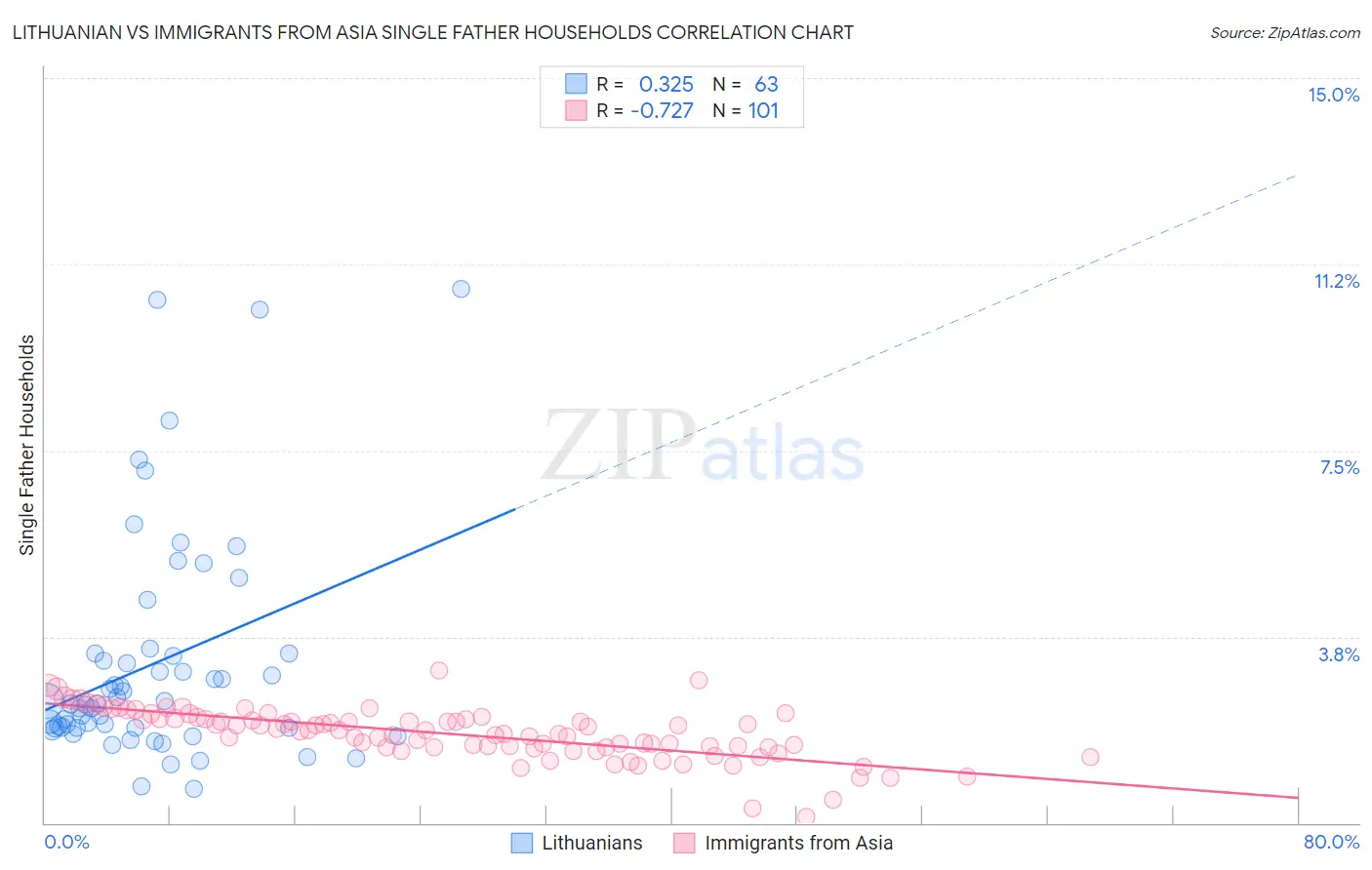 Lithuanian vs Immigrants from Asia Single Father Households Correlation Chart