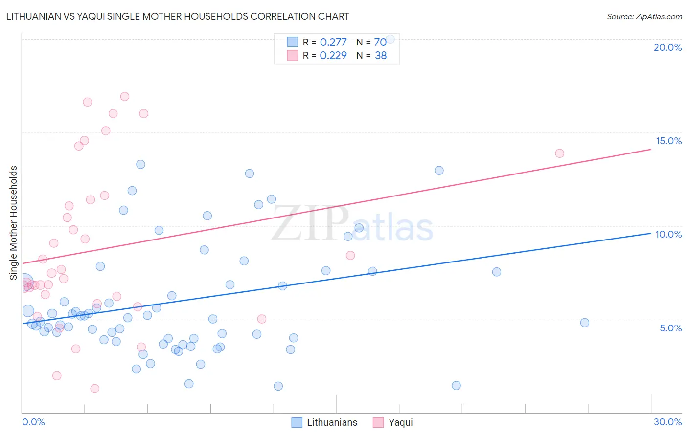 Lithuanian vs Yaqui Single Mother Households Correlation Chart
