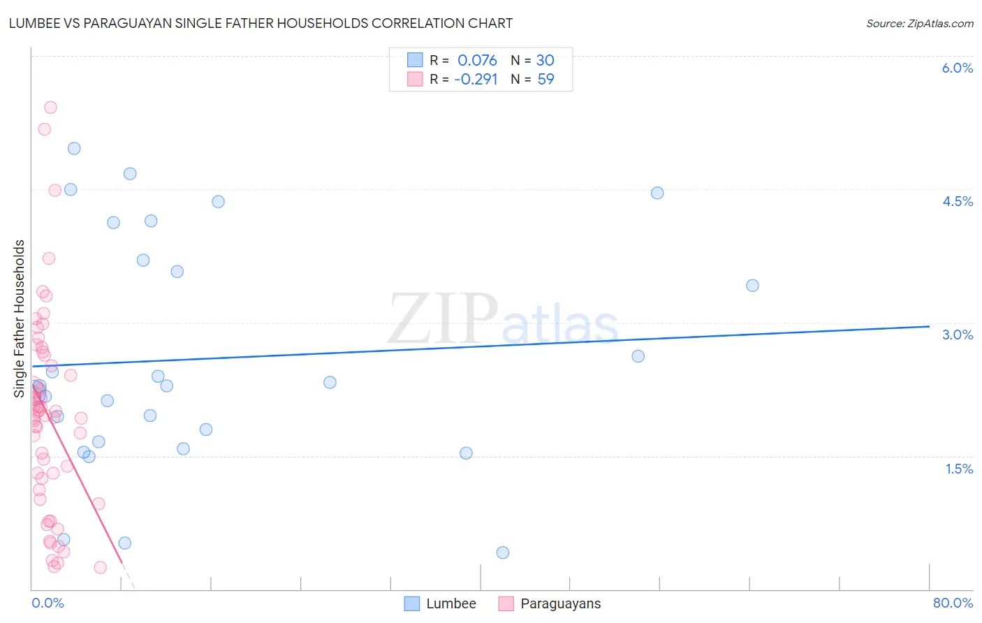 Lumbee vs Paraguayan Single Father Households Correlation Chart