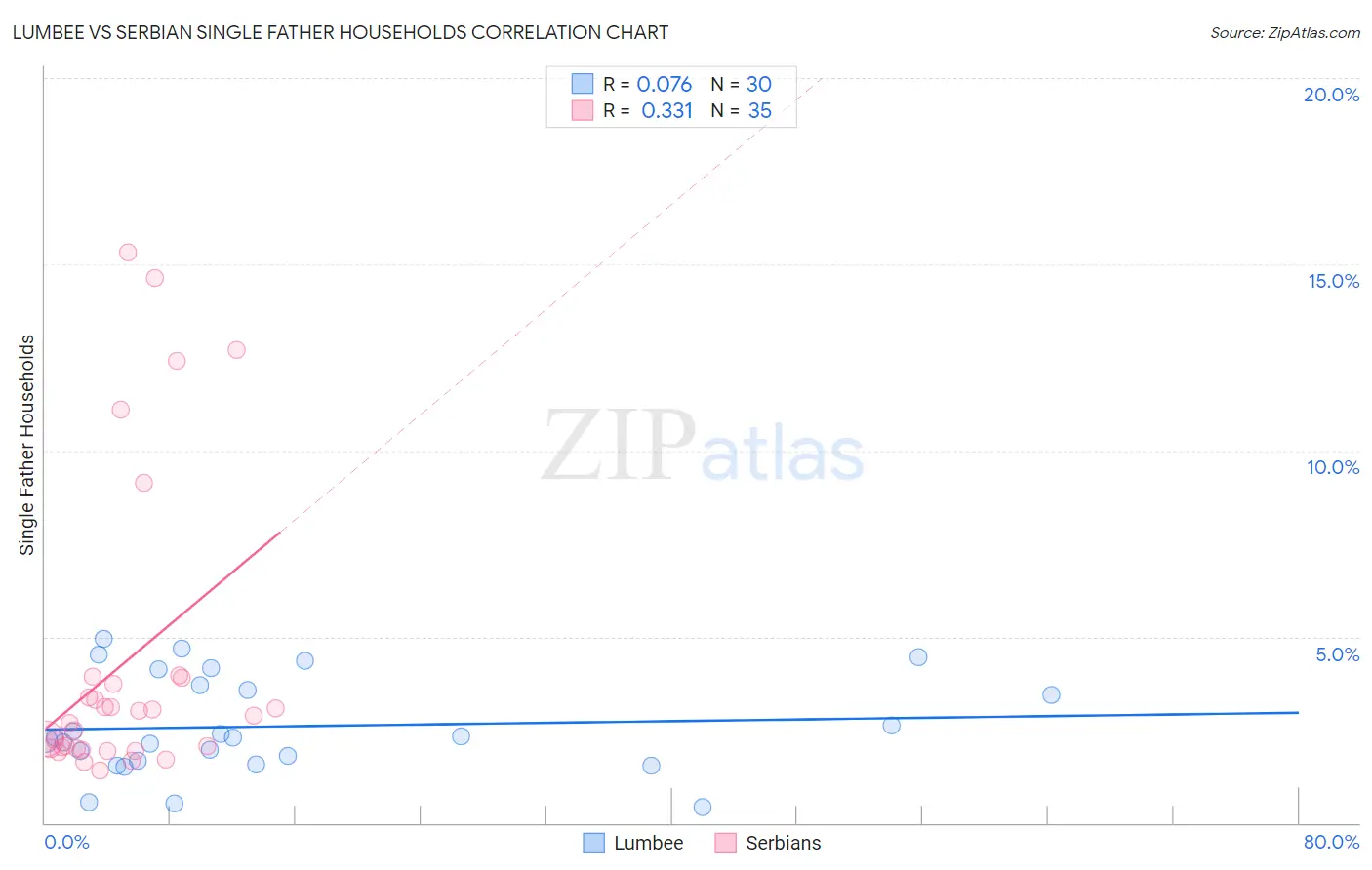 Lumbee vs Serbian Single Father Households Correlation Chart