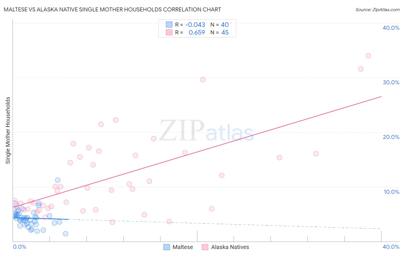 Maltese vs Alaska Native Single Mother Households Correlation Chart