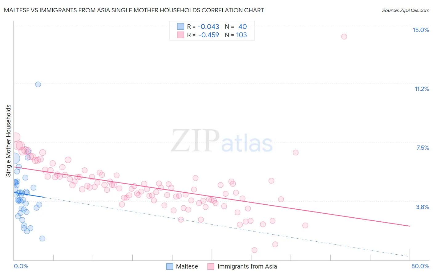 Maltese vs Immigrants from Asia Single Mother Households Correlation Chart