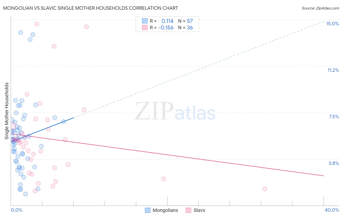 Mongolian vs Slavic Single Mother Households Correlation Chart