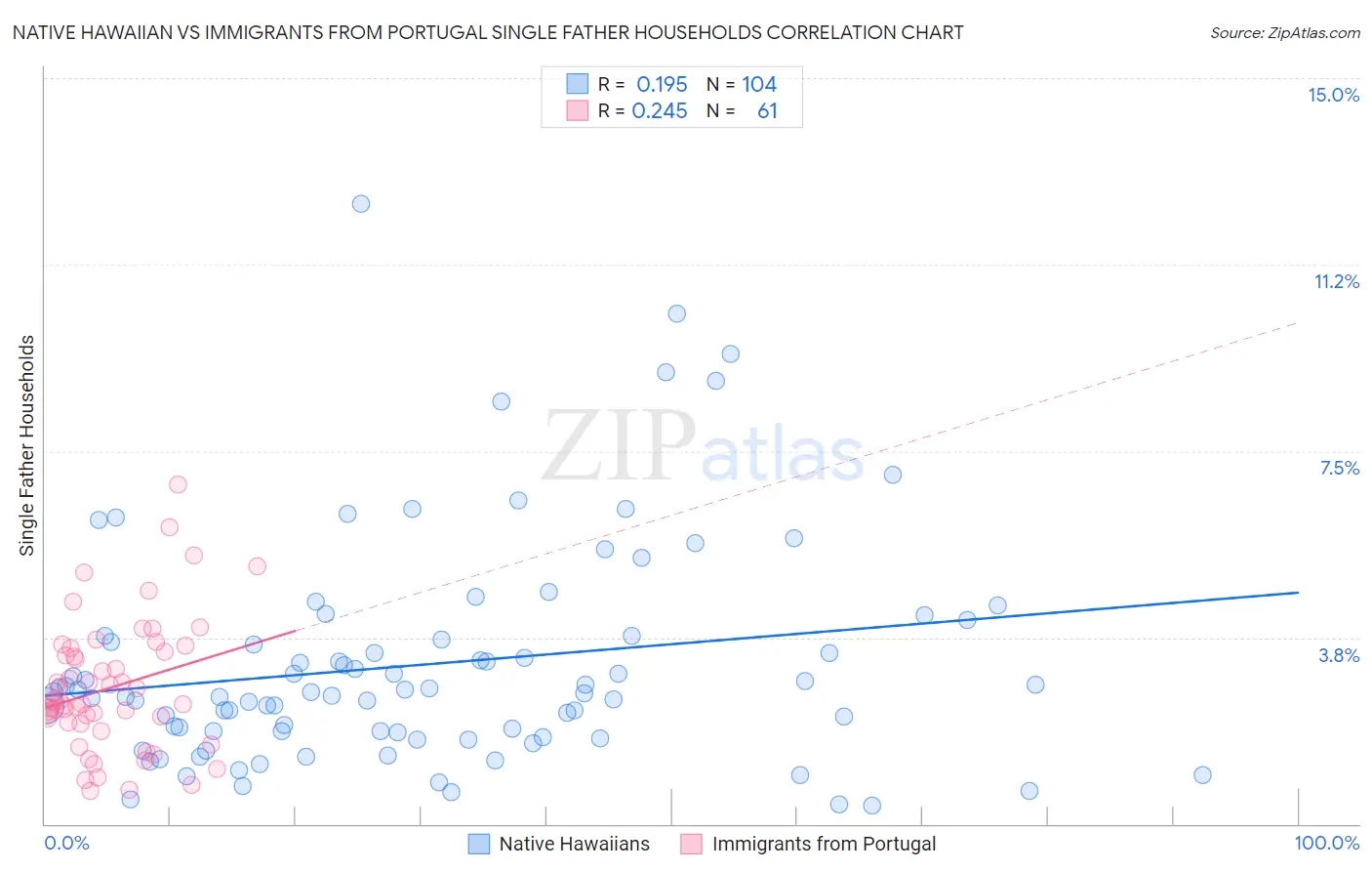Native Hawaiian vs Immigrants from Portugal Single Father Households Correlation Chart