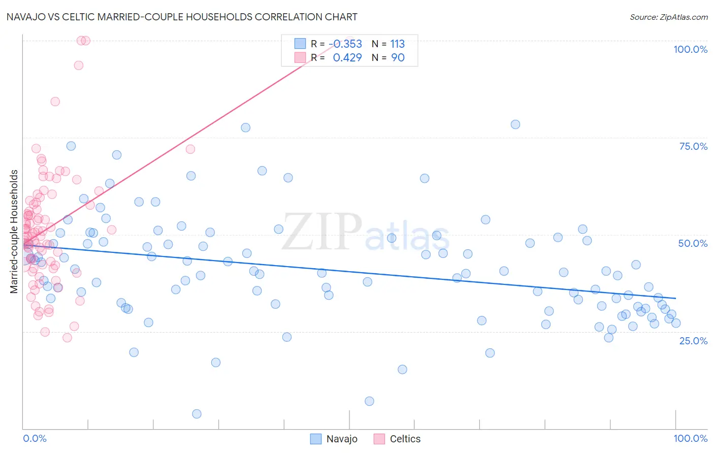 Navajo vs Celtic Married-couple Households Correlation Chart