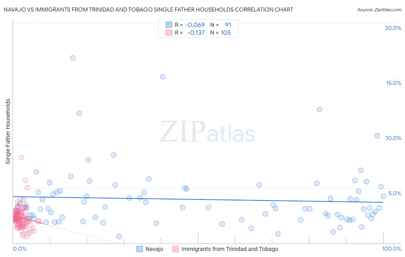 Navajo vs Immigrants from Trinidad and Tobago Single Father Households Correlation Chart