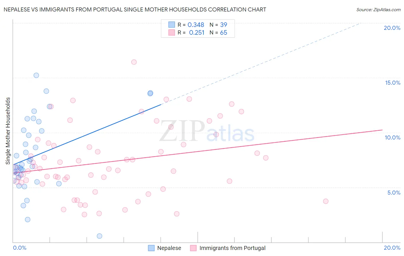 Nepalese vs Immigrants from Portugal Single Mother Households Correlation Chart