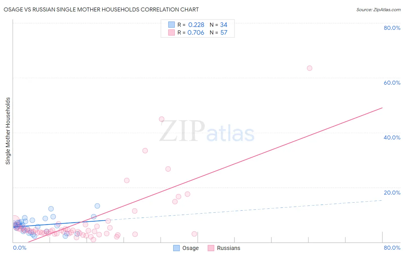Osage vs Russian Single Mother Households Correlation Chart