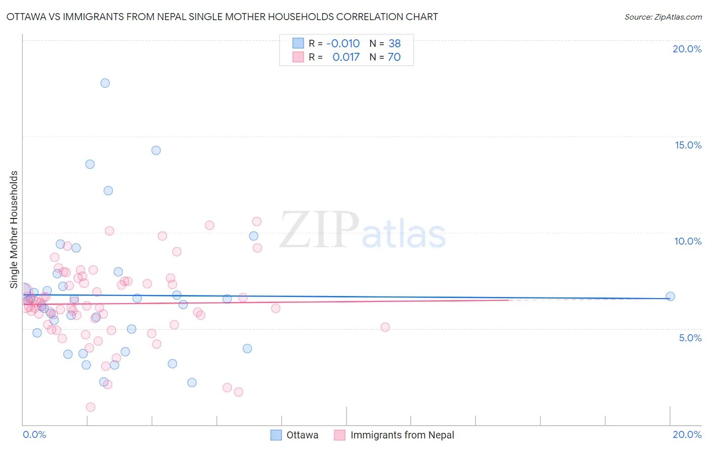Ottawa vs Immigrants from Nepal Single Mother Households Correlation Chart