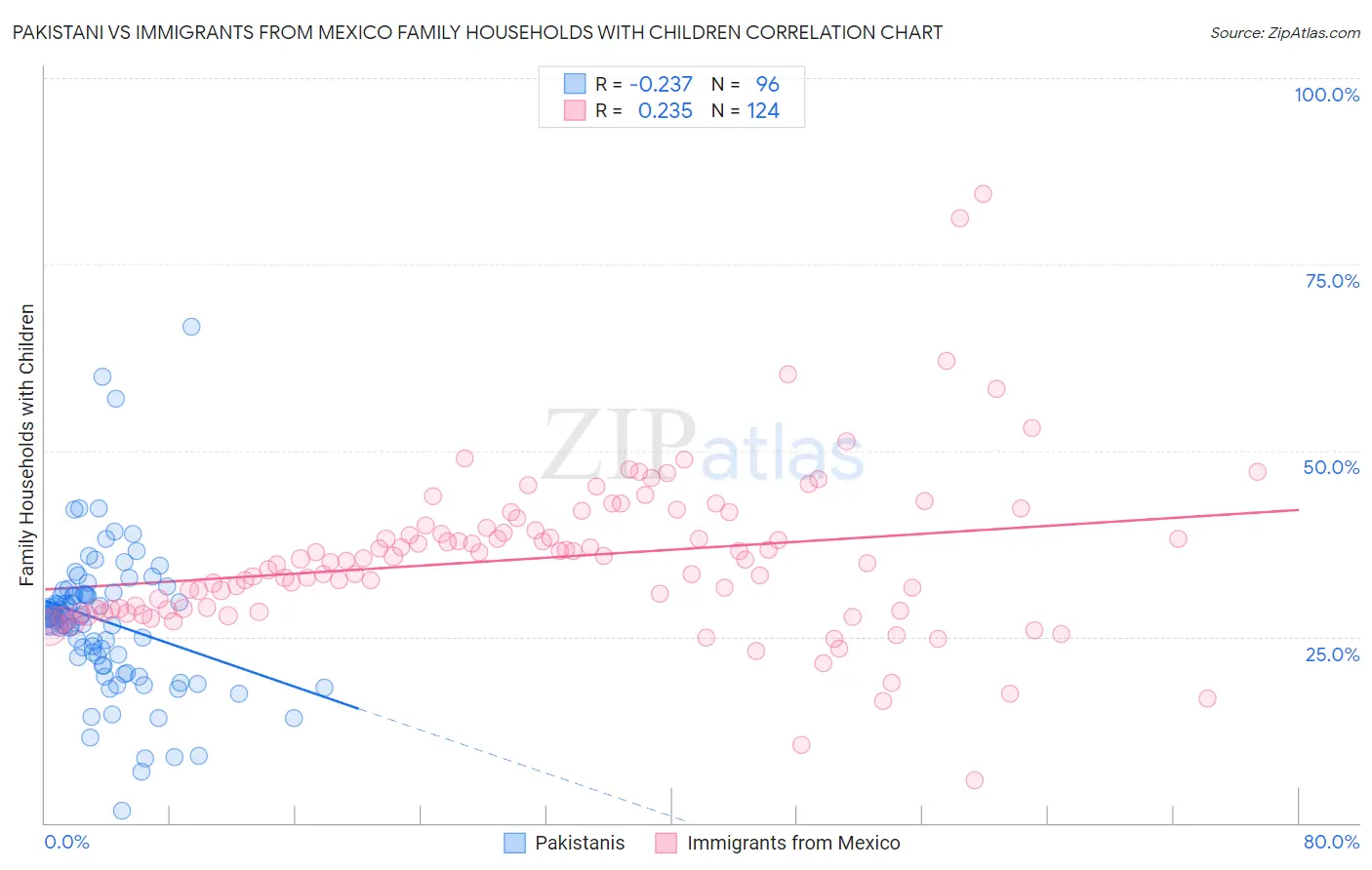 Pakistani vs Immigrants from Mexico Family Households with Children Correlation Chart