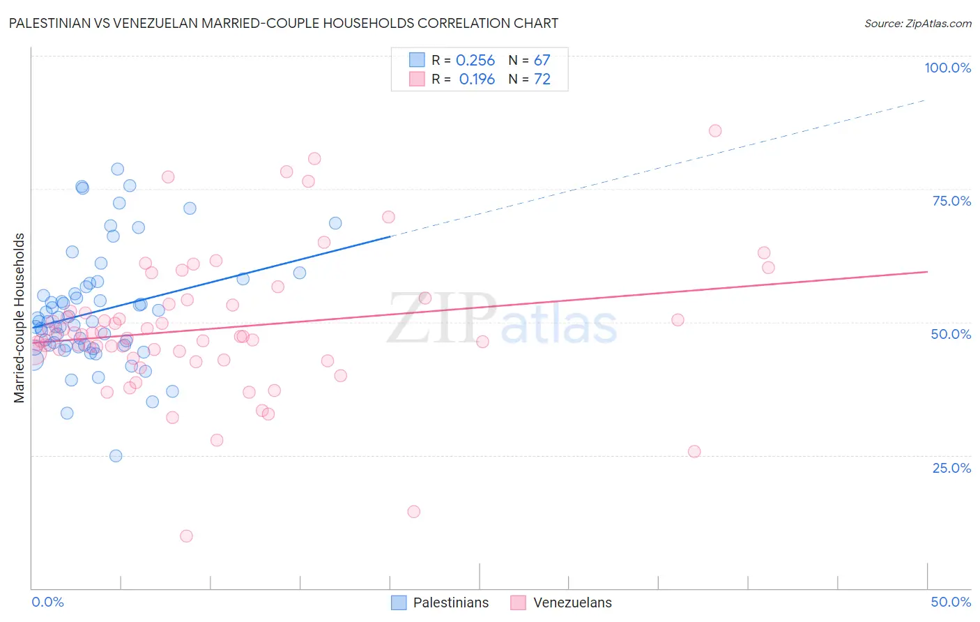 Palestinian vs Venezuelan Married-couple Households Correlation Chart