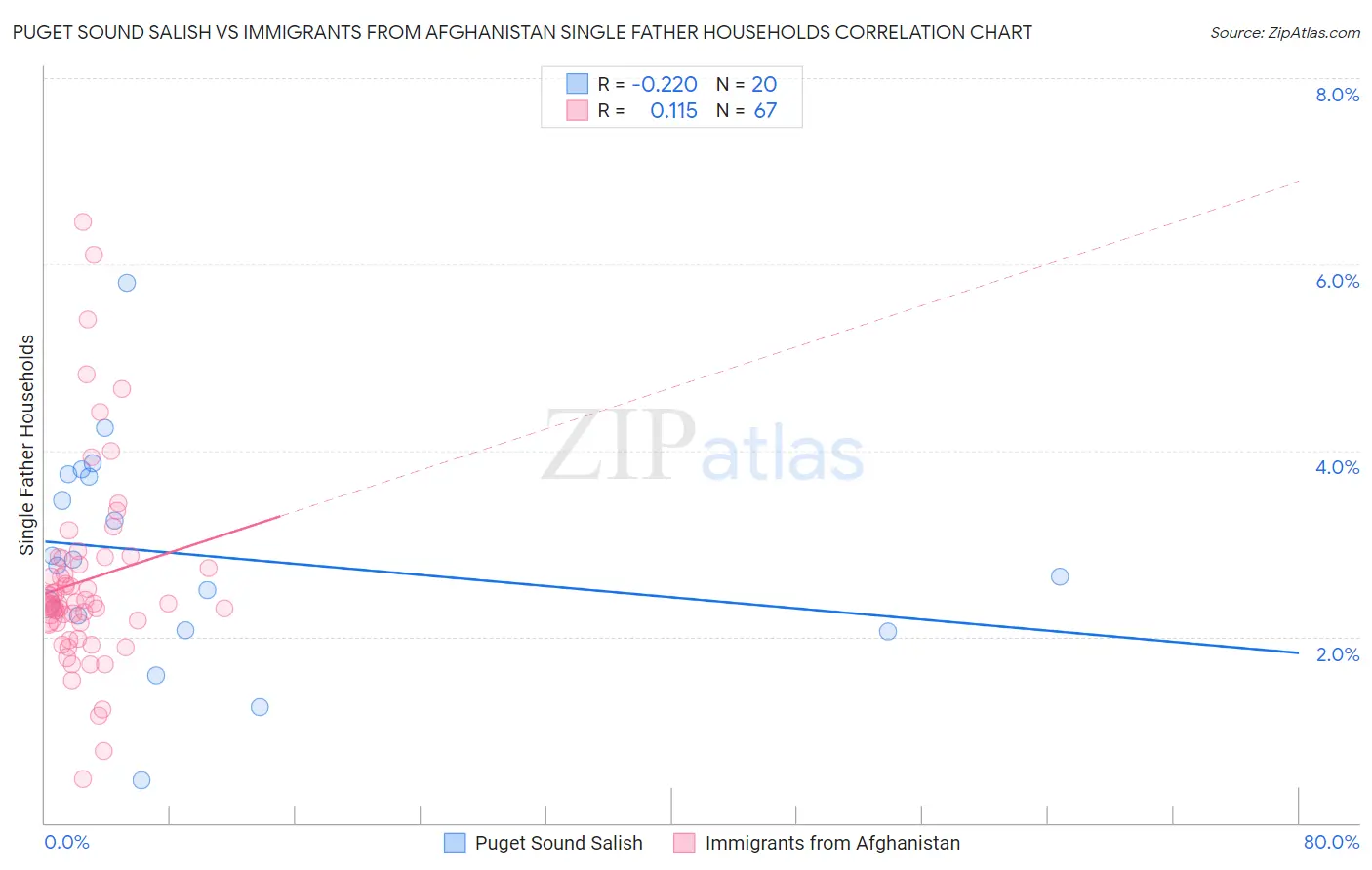 Puget Sound Salish vs Immigrants from Afghanistan Single Father Households Correlation Chart