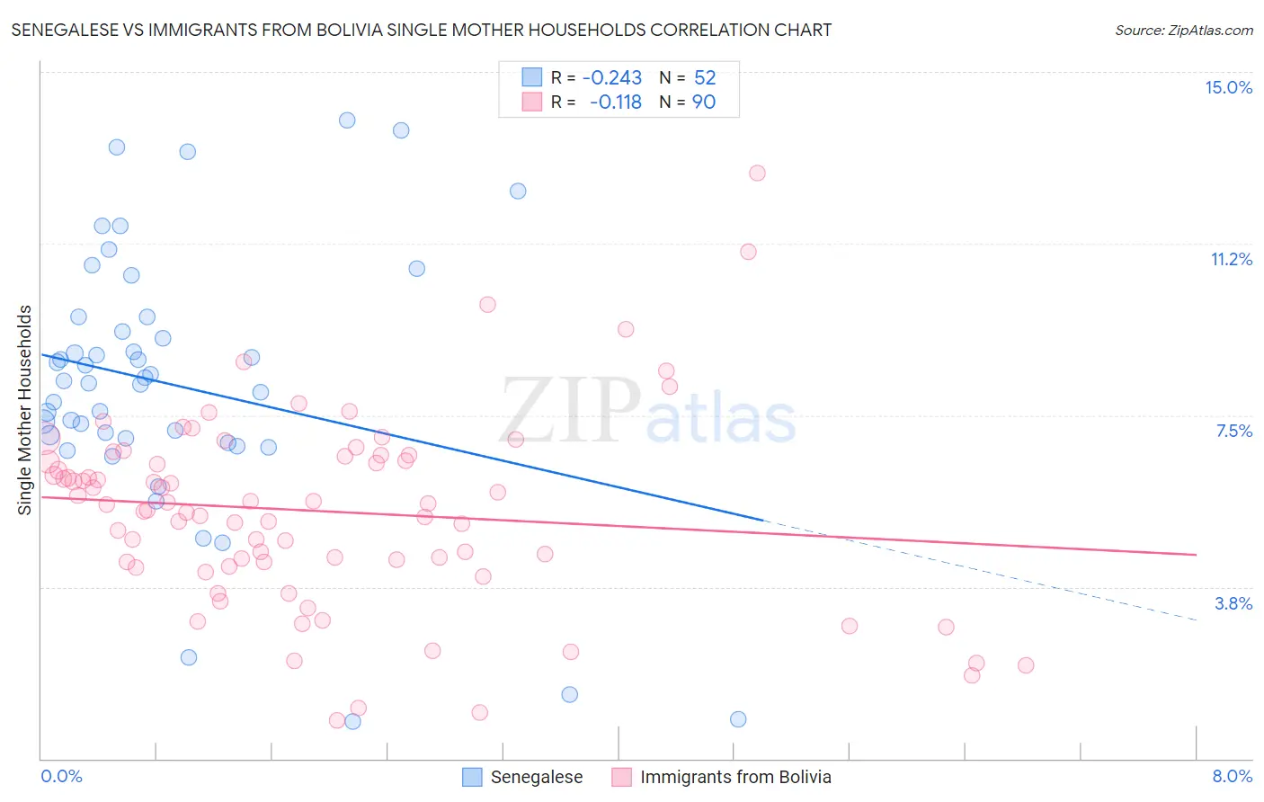 Senegalese vs Immigrants from Bolivia Single Mother Households Correlation Chart