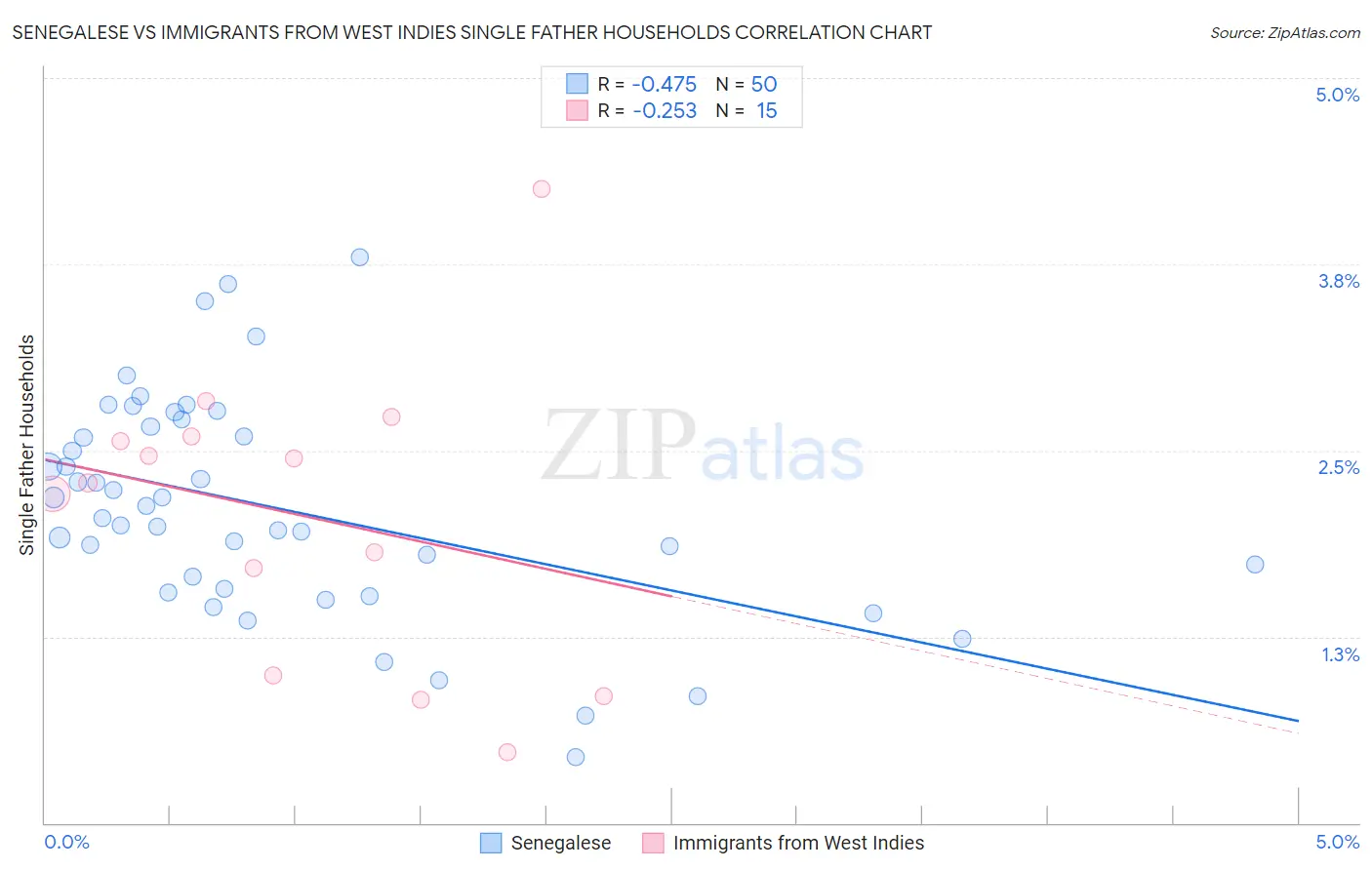 Senegalese vs Immigrants from West Indies Single Father Households Correlation Chart
