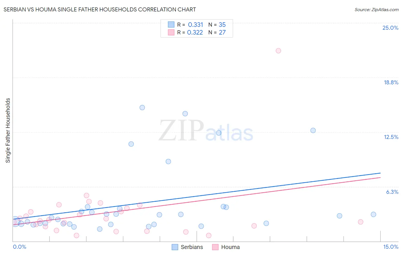 Serbian vs Houma Single Father Households Correlation Chart